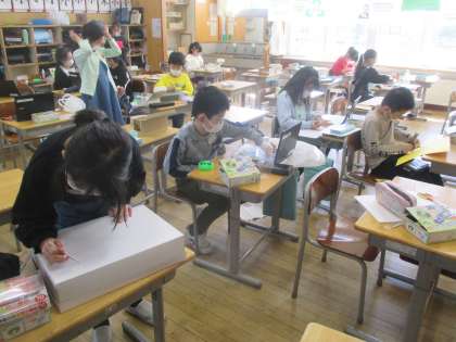 理科の学習で学んだ磁石や電気の力を使ったおもちゃづくりに取り組んでいます。ものづくりの力は総合的な学習の時間に鍛えられているようで、どんどん自分の想像を形にしていく子供たちでした。