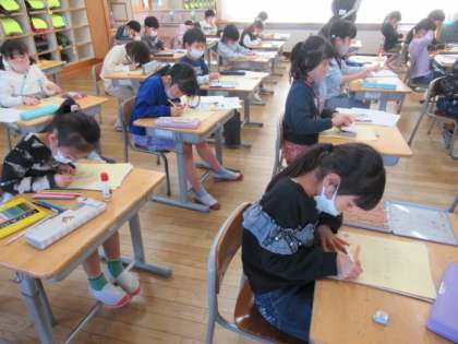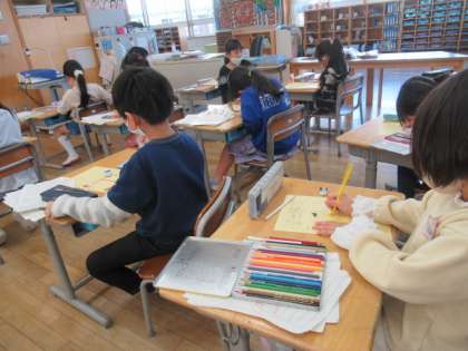 色上質紙を使って、表紙をつくります。学習の足跡がつまった冊子になります。
