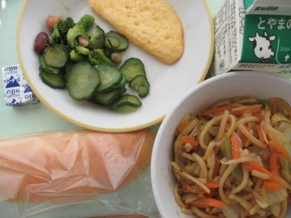 麺を野菜や肉等の具材とともに炒めた今日の給食のようなものと、麺を油で揚げてカリッとさせ、その上からとろみをつけたあんをかけたものがあり、味付けは塩味や醤油味が多いようです。