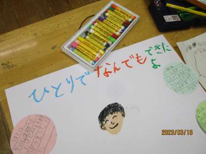 生活科の学習では、1年を振り返って、自分ができるようになったことはどんなことかを思い出しました。いろんなことができるようになった自分に気付き、成長を感じていました。