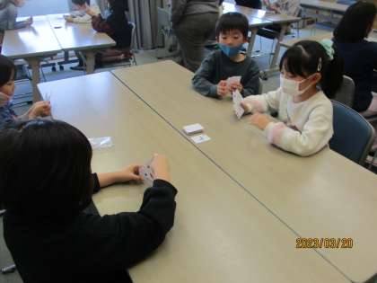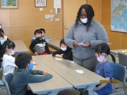 タミーカ先生との楽しく外国語の学習をしました。英語で挨拶したり、アルファベットの発音を練習したりしました。学習したことを活かして、早速アルファベットUNOにチャレンジ!