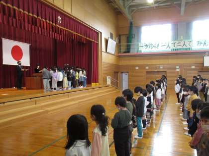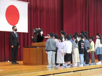 修了証授与では、各学級の代表者が校長先生から修了証をいただきました。