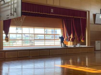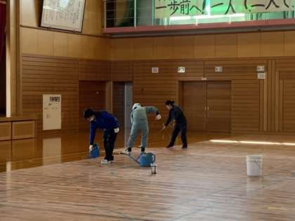 地域より体育館の床のワックスがけをしてくださいました。徐々に床が輝き始めています。来月からはピカピカになった体育館でまた運動を楽しむことができます。ありがとうございます。