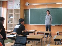 若手教員が集まって、明日の始業式、学級開きに向けて、研修をしました。実際に一人一人が順に前でやってみた後、それぞれの語りについて批評し合いました。