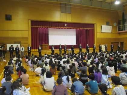 式では新しい校長先生からお話をいただきました。本校の重点目標である「一歩前へ!一人で、二人で、みんなでチャレンジ 光陽っ子」を分かりやすくお話しいただきました。さあ、光陽っ子のみなさん!これからの生活の中で実行していきましょうね。