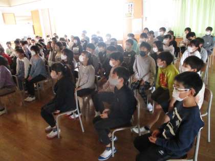 多目的室3に集まって、5年生全員で入学式を視聴しました。自分たちが1年生だったころを思い出したり、5年生として1年生のお手伝いをしよう!などと思ったりしながら、見ていました。