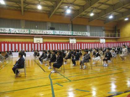 目をきらきらと輝かせた1年生が入学しました。入学式では、しっかり話を聞いたり、元気に返事をしたりして、立派な態度でした。