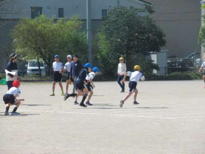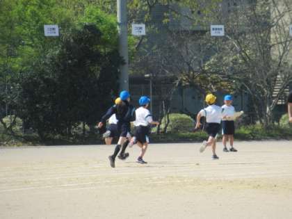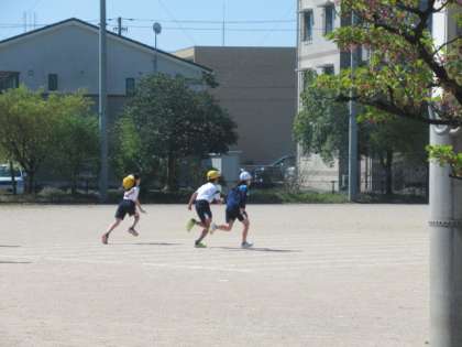 この一年間で走力がどれだけ伸びたかな?今日はグラウンドで走りました。運動会に向けて、これからどんどん走りましょうね。