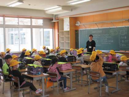 初めて自分たちで下校するため、下校コースの確認をしました。よく話を聞いて、しっかりとコースごとに並ぶことができました。安全に気をつけて下校できました。