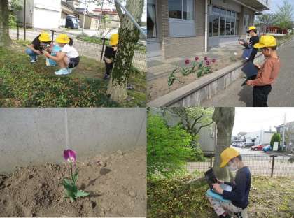 見つけた春をクロームブックの写真機能を使って記録しています。