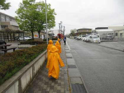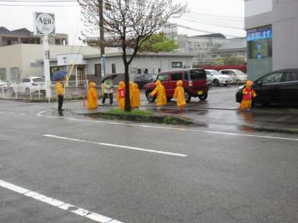 雨にも負けず、風にも負けず・・・交通安全に気を付けて歩くことができました。