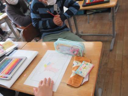 社会科では白地図を用いて、富山県について学習しました。蝶のような形をした富山県の地図に色分けをしながら、県の様子を確認していきました。