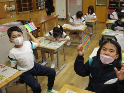 2年生の学年目標は「にじいろ」です。一人一人が自分らしい色で輝いて、全員で大きな綺麗な「にじ」になってほしいという願いが込められています。