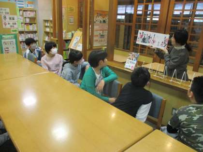 司書の先生に図書室の使い方を教えていただいたり、読み聞かせをしていただいたりしました。SDGsに関する絵本の読み聞かせでは、子供たちはとても真剣におもしろそうに聞いていました。