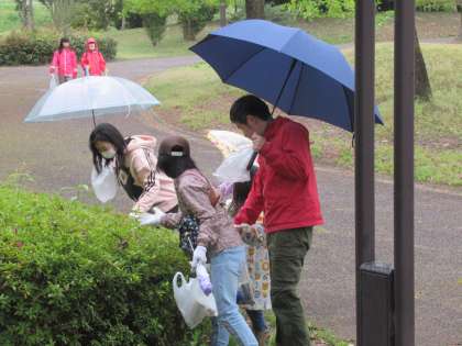 地域の恒例行事である「光陽歩こう会」の第1回めが行われました。あいにくの雨天となりましたが、活動範囲を狭めて布瀬南公園の環境整備のみとして実施されました。子供たちやその保護者、関係の方々の他、小学校の教員も参加して、公園をみんなで歩きながら、ごみ拾いをしました。