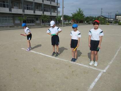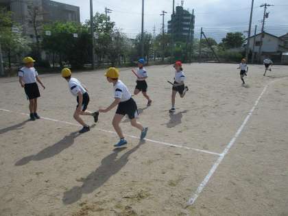 体育科の授業でリレーをしました。だんだん、バトンパスが上手になってきましたね。