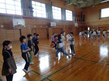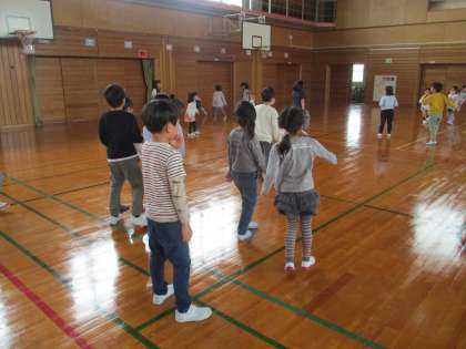 今日は、初めてのびのタイムに体育館を使用することができました。みんなで一緒に体育館へ行き、ルールや遊び方の確認をしました。