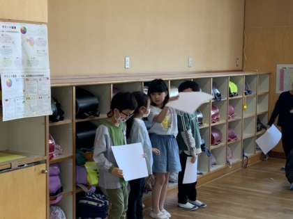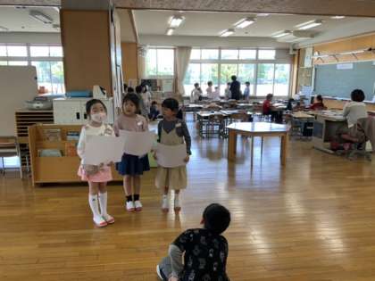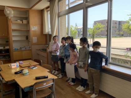 グループごとに立ち稽古です。聞く人に伝わるようはきはきと話す練習をしました。