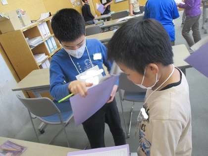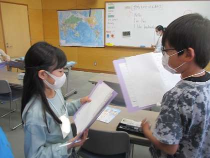 すきなスポーツや食べ物など、進んで伝え合う子供たちです。