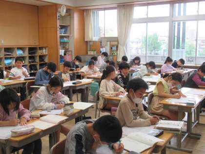 午後から担任の先生は出張です。この時間は連絡帳を書いたり、配りものをしたり、そして漢字テストをしたり。密度の濃い時間です。