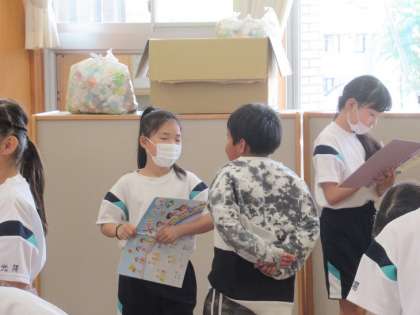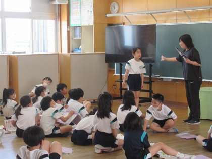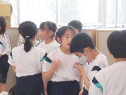 今日は、ALTの先生は入らず、担任の先生と外国語活動を楽しみました。外国語活動は何より活動を通して慣れ親しんでいきます。今回も英語による会話満載の時間になりました。