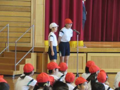 運動会に向けての活動がいよいよ始まりました。今朝は結団式を気合いを入れて行いました。司会進行は全て児童の手で進めます。