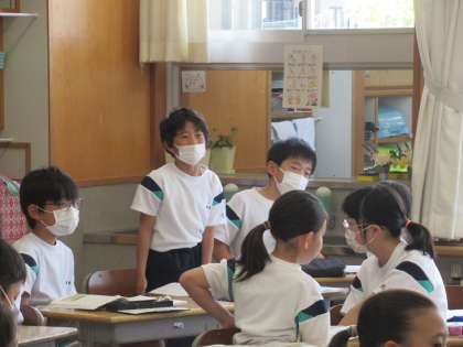 「白いぼうし」を教材に学習を進めています。今日は、「女の子はなぜいなくなってしまったのだろう」をテーマに考え、話し合いました。友達の考えを聞くことへの関心が高く、話合いはぐんぐん深まっていきました。