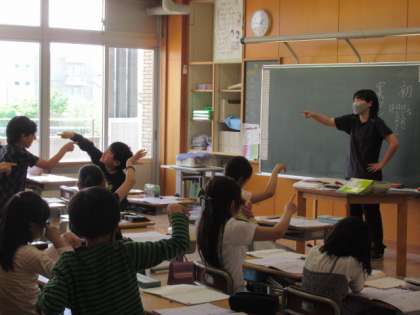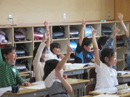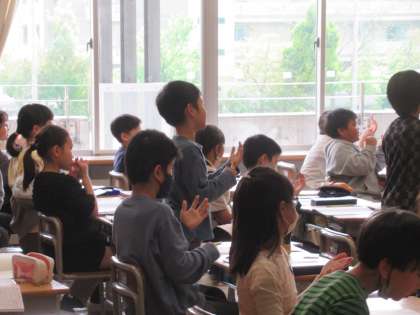 漢字を学習しました。指で大きく書いたり、小さく書いたり、声を合わせて書いたりと変化をつけながら何度も繰り返します。おかげで、難しい「案」という漢字もこれでばっちりです。