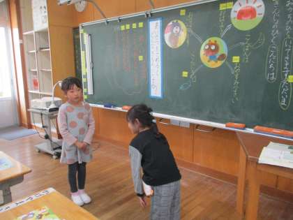 道徳の時間に、あいさつをされるとどんな気持ちになるか話し合いました。実際に友達に心を込めてあいさつをして、感じたことを交流しました。「うれしくなるよ」、「もっと仲良くなれそう」、「心がぽかぽかになる」、などの声が聞かれました。