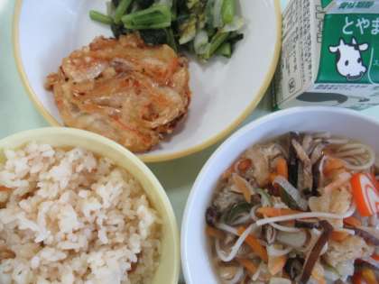 給食で使われているお米は、富山県のブランド米「富富富」です。食べた人に「ふふふ」と微笑んで、幸せな気持ちになってもらいたいという思いで名付けられました。