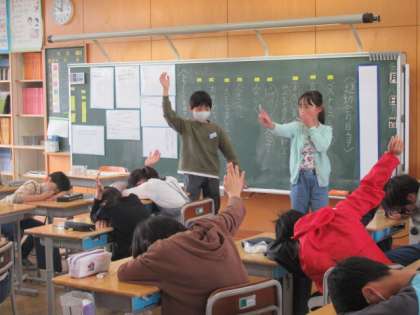 児童会のスローガンをもとに、各学級での取り組みに対する思いを話し合いました。裁決の際には、互いの挙手の様子が明らかにならないよう伏せながら行い、司会者が確認していきます。