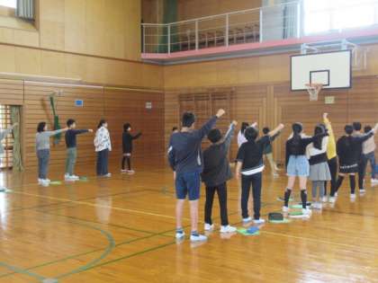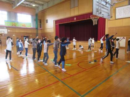 体育館に四つの団が集合して行うことにより、競い合いの気持ちが高まります。声の張りも取り組むごとによくなってきています。さすが6年生です。