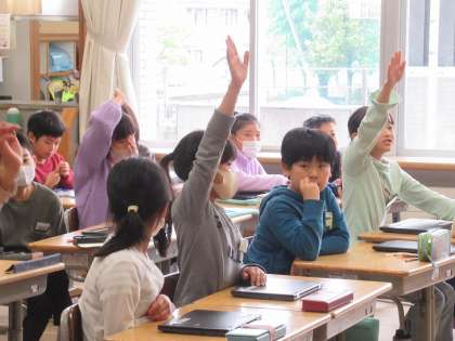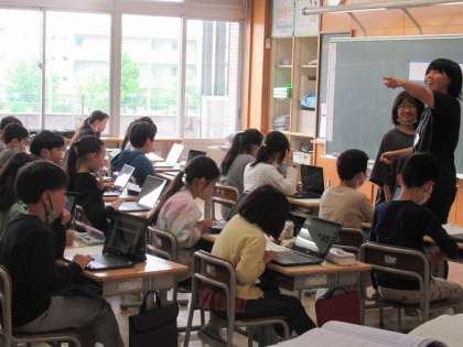 ヘチマ栽培にはたくさんの可能性があります。実ったら、食用にしたり、化粧水にしたり、たわしにしたり、他いろいろです。種植えを済ませ、しばらくの間は、そのヘチマのもつ可能性について調べていきます。今日も意欲溢れる子供たちです。