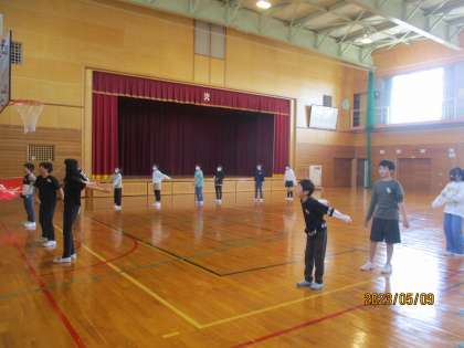 木曜日には全校で第一回目の応援練習があります。1〜5年生に「どのように伝えたら伝わるかな」「どんな振りがいいかな」ということを考えながら練習しています。