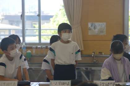 本日は、各クラスで決めた運動会の目当てを伝え合う代表委員会が開かれました。学級代表がクラスで決めた目当てを伝えたり、他のクラスの目当てを聞いて思ったことを話したりしていました。「他のクラスの意見を聞いて、6年生として頑張らないといけないと思った」などたくさん感想を言う学級代表でした。運営委員会の子供たちも、司会をしたり感想を言ったりし、立派に運営をしてくれました。