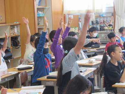 話題を自分たちの生活の身近な部分から取り上げることで、子供たちの思考も意欲的かつ真剣になります。今日もたくさんの意見が出て楽しい授業になりました。