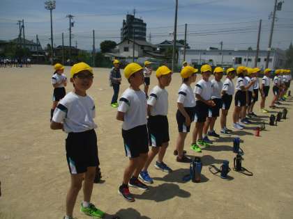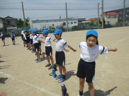 こちらは青・黄団の応援の様子です。こちらも負けじと大きな声を出して応援をがんばっていました。いいぞ!5年生!!