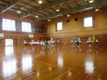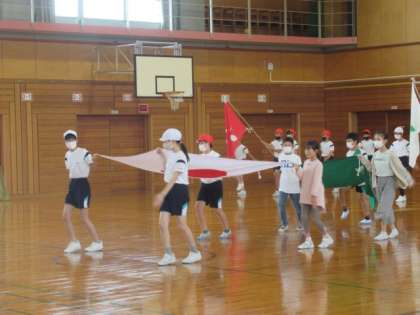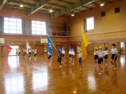 2限に、入場行進及び開閉会式の練習をしました。今回は、短い距離ながらも入場行進を行います。団リーダーの子供たちは、自分たちがまず手本にならなければと真剣に取り組みました。