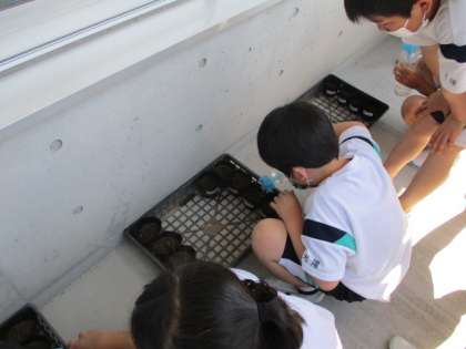 理科で植えた植物のお世話をがんばっています。どのくらい水をやろうか悩んだり、早く芽が出ないかなと何度もベランダに見に行ったりしています。