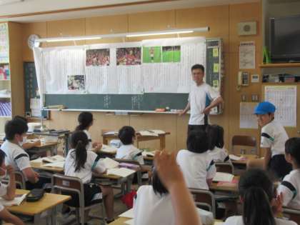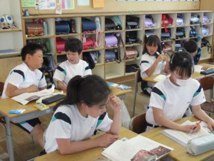 黒板いっぱいに文章を掲げ、全体で、ペアで話し合いました。