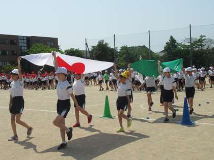 運動会に向けての全体練習を行いました。今回は、短距離ながらも入場行進を再開します。歩き方、並び方等、丁寧に確認しました。数年間制限されていたとは思えない立派な光陽っ子の姿でした。