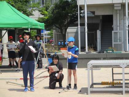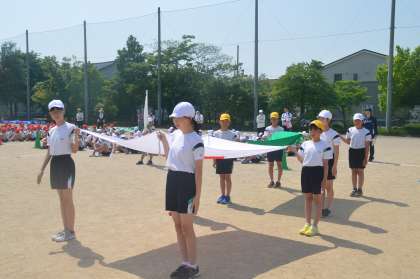 開会式、閉会式の練習をしました。元気よく行進し、運動会で頑張る気持を高める子供たちです。6年生は、式で役割をもっている子供も多いです。自信をもって堂々と行っていました。
