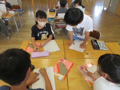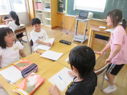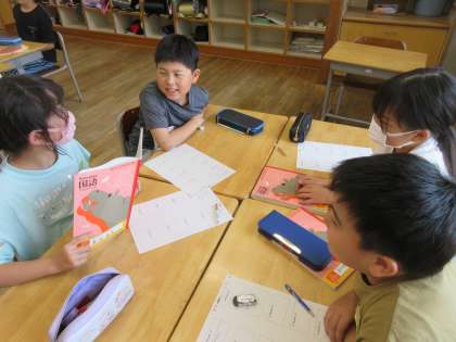 国語科「もっと知りたい、友だちのこと」の学習で、グループの友達の話を聞いてから、質問をしました。知りたいことについて、どのように質問するとよいか考えることができました。