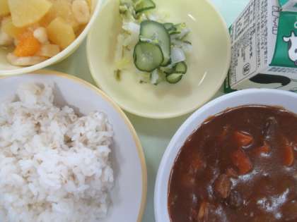 食べキリンハヤシには、玉ねぎ、ベーコン、きのこ、りんごが使われています。それぞれの食品の頭文字を並べると、た・べ・き・りんになります。