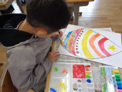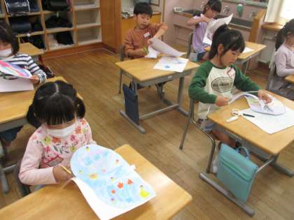 「どんな模様にしようかな」「何色を塗ろうかな」と、『ふしぎなたまご』をどんなたまごにしようかじっくり考えながら取り組みました。