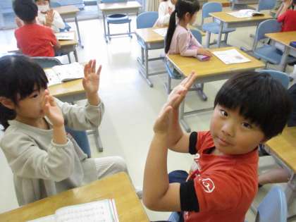 友達と楽しく関わり合いながら、拍子の感覚を身に付けることができました。
