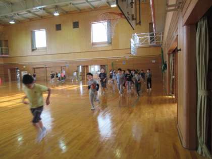 毎朝体育館で走りこんでいる4年生。少しずつスピードもアップしているようです。多い子は30周ほど走っているのではないかとのこと。体力向上に間違いなく寄与しています。