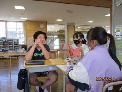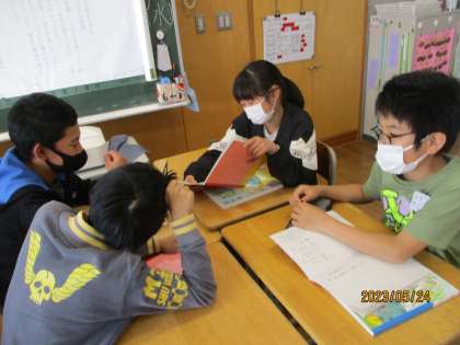 国語科「聞いて、考えを深めよう」では、「朝食は、パンよりもご飯の方がよい」という話題について賛成か反対かを話し合いました。自分の考えを事例を用いながら伝え、相手の意見をよく聞いて質問をしあいながら、自分の考えを深めていきます。