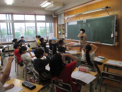 新しく習う漢字をしっかり覚えるために、一生懸命学習に励む子供たち。