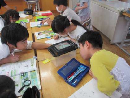 ついに、モンシロチョウが羽化して成虫になりました。観察した後、みんなで逃がしました。元気でねー!と声をかける子供たち。うれしさと寂しさを感じているようでした。